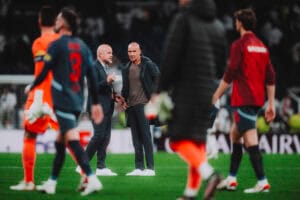 Rouven Schröder und Thomas Letsch im Estadio Santiago Bernabeu. (c) Andreas Schaad – FC Red Bull Salzburg